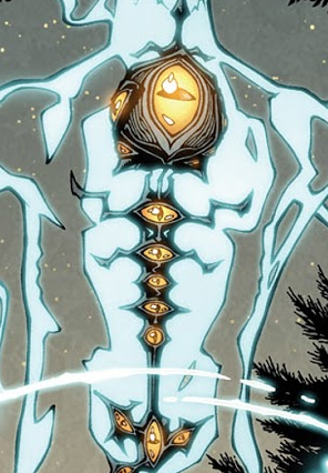 The entity originated from a realm inhabited by eldritch demons called the Children of Leng. On the day the demon was born, its "mother" devoured half of its litter of siblings but was then eaten by its "father", whom the demon itself later ate.[1] In 1988, the Tamers of the Tempest opened the Black Door in order to let a demon through, that would turn into Whispering Iron with no host. Due to the accidental intervention of Duncan Locke, the demon found a host in Lucas "Dodge" Caravaggio.[2]