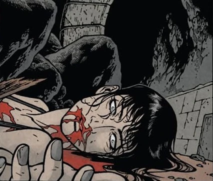 Without the shadows to support the structure of the cave, destroyed by Rendell, the ceiling collapsed, and Rendell was able to rescue his friends and brother from getting buried. Dodge, however, was crushed beneath the rubble. She told them, despite the fatal injuries, that she felt nothing, and started speaking in an alien language before she finally died.[4]
