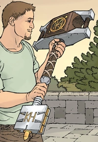 While Duncan Locke starts to rebuild the Keyhouse by building a doorway, Tyler had been busy in the manor's smithy/workshop (presumably). He removes one of the stones from the plaza in front of the burnt down manor and digs out a hole in which he fits a large keyhole. With a huge key, resembling Thor's hammer, he then proceeds to flip up a whole new Keyhouse out of the ground.[2]